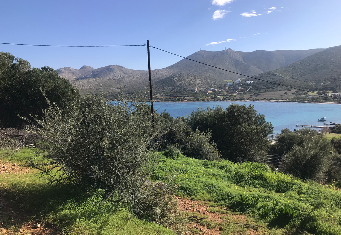 Una gran parcela de 6.700 metros cuadrados, con vistas al mar en una tranquila bahía en la parte noreste de Leros.