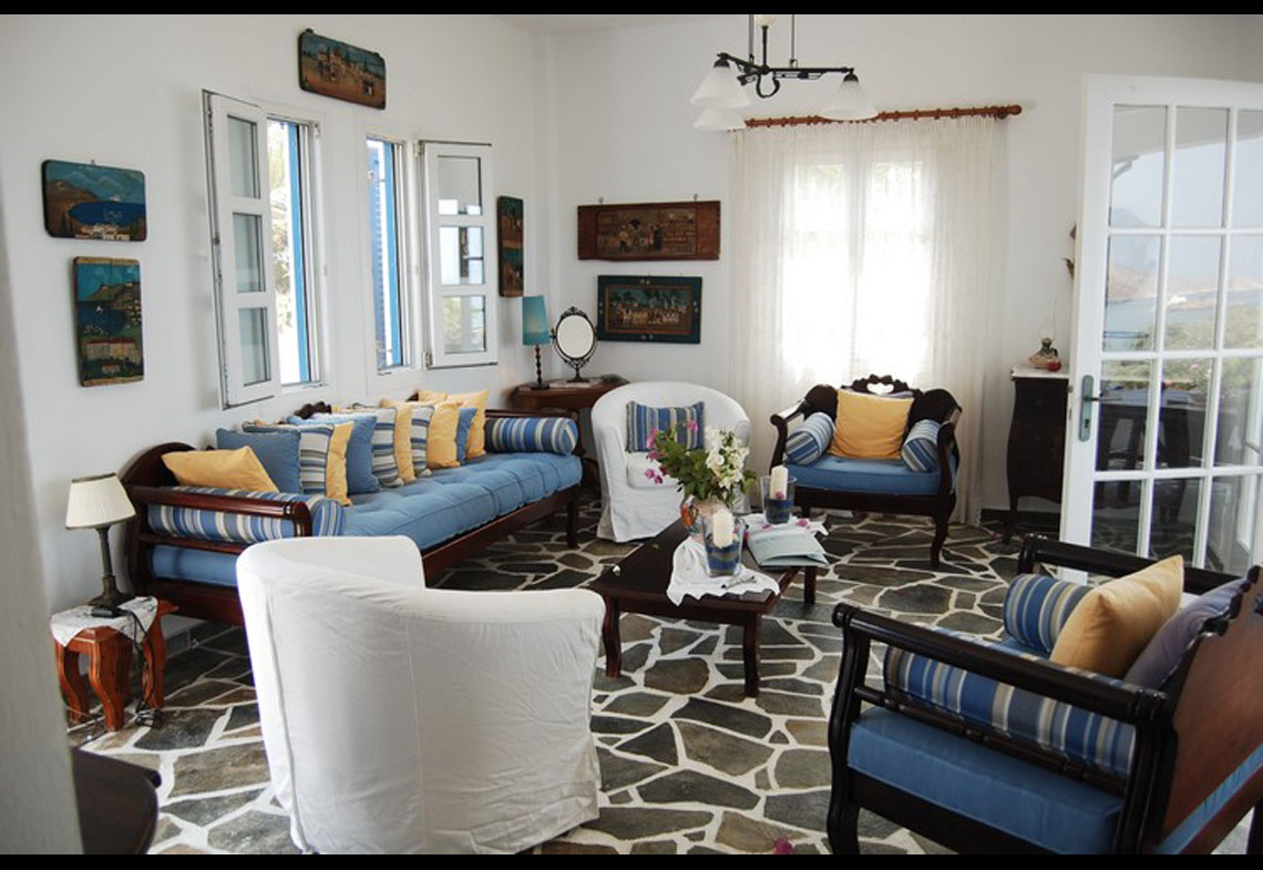 Elle est située dans un quartier calme de l’île, en bord de mer avec une plage privée et un petit quai pour un bateau. Le terrain est couvert d’herbe bleue, de plantes et d’arbres. La maison principale comprend 2 chambres et 2 salles de bains à l’étage supérieur et un salon, une cuisine/salle à manger, un WC et une superbe véranda avec une vue spectaculaire sur la mer, au rez-de-chaussée. Les deux maisonnettes sont identiques et entièrement meublées. Elles disposent d’une cuisine, d’un salon et d’une salle de bains au rez-de-chaussée et d’une chambre à l’étage avec chacune un balcon privé. Il y a également un barbecue sur place et un court de tennis (qui pourrait facilement être converti en piscine). Il y a la possibilité de s’agrandir si on le souhaite. La maison est facilement accessible par la route municipale.