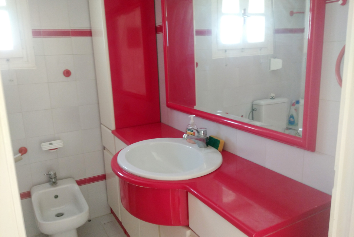 Il negozio è diviso in due spazi con due WC. Mentre l’appartamento è composto da tre camere da letto, soggiorno, cucina, bagno e una lavanderia. Alla trama ci sono anche due metri. Uno all’ingresso principale e uno sul retro della casa, a cui c’è anche l’accesso diretto dall’appartamento. La sua posizione è ideale, in quanto è molto vicino all’aeroporto e allo stesso tempo molto vicino al centro turistico e commerciale di Alinda. È facilmente raggiungibile da una strada comunale e dispone di elettricità e approvvigionamento idrico.